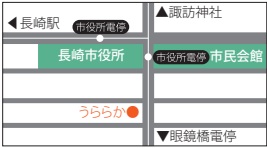 | 住所 | 〒850-0874 長崎市魚の町2-16華成ビル4階 ![]() 長崎電鉄「市役所電停」 徒歩3分 |
